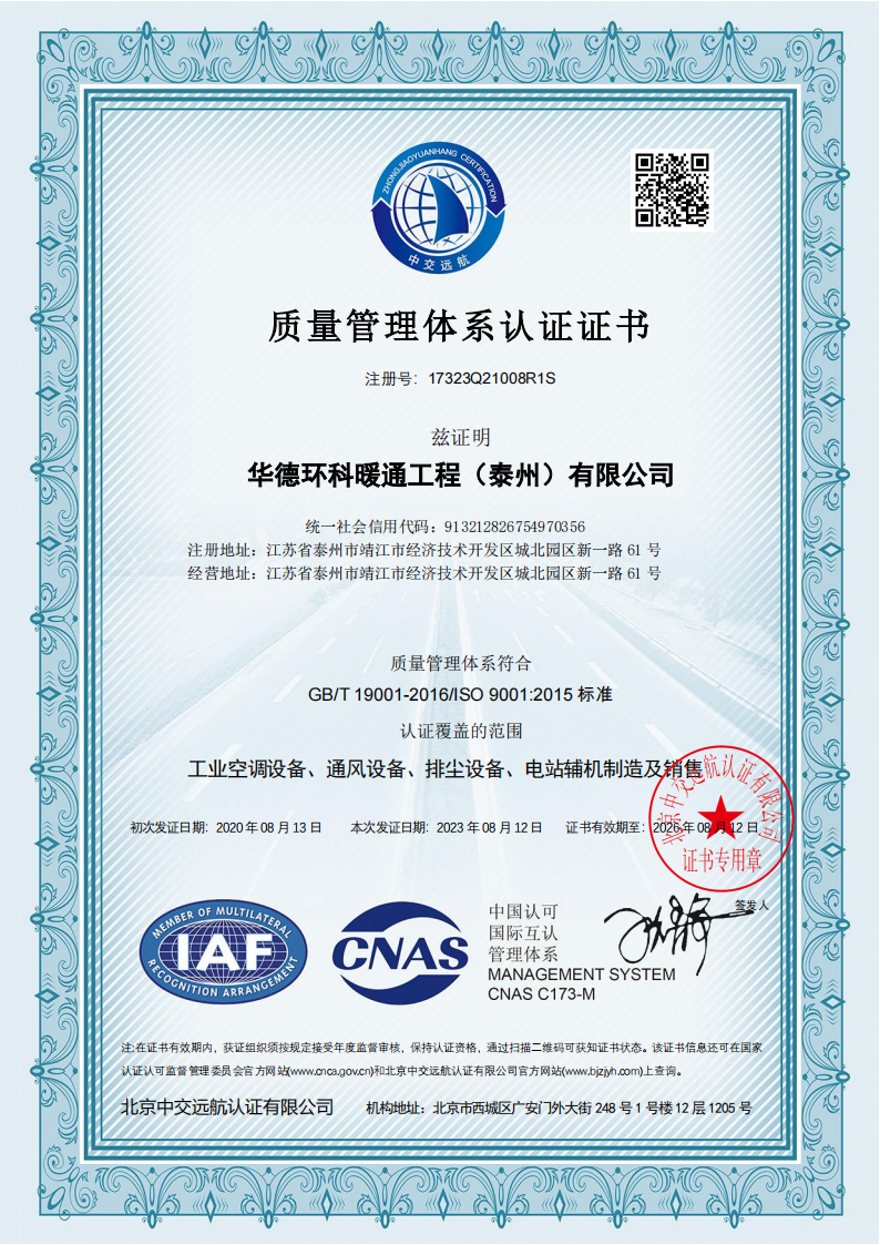 华德环科暖通工程(泰州)有限公司,地处江苏省泰州市靖江城北园区新一路61号,是2021年初由靖江市华德暖通工程有限公司升级更名而来。现华德环科工程公司下辖华德环科暖通工程公司、靖江市华德环保设备制造有限公司、华之德能源工程泰州有限公司等三大产业板块,致力于暖通工程、水务环境以及能源安装工程等系统设计开发、设备制作及安装等一条龙产业链。